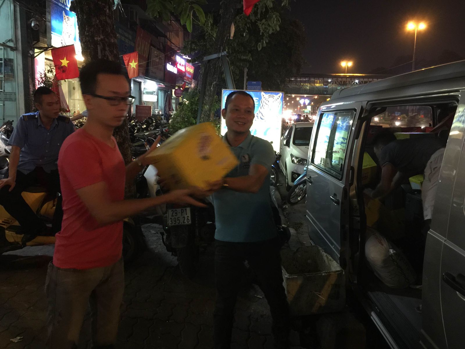 Đoàn thanh niên chuyển hàng đến điểm tập kết để đi Hà Giang