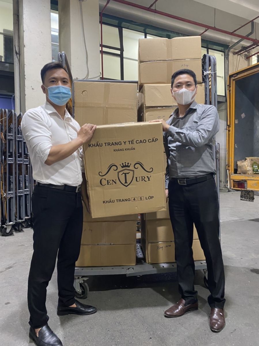 Đ/c Hoàng Hải, Phó Bí thư Đoàn Tổng công ty trao khẩu trang y tế ủng hộ cho TP Hồ Chí minh