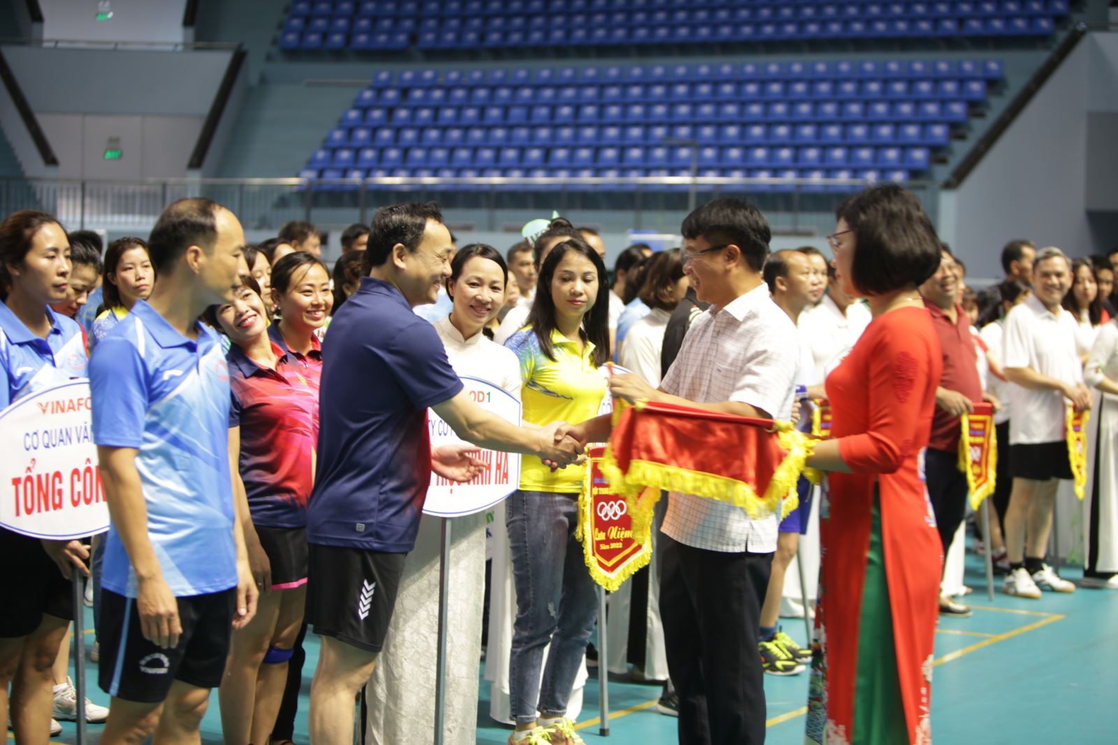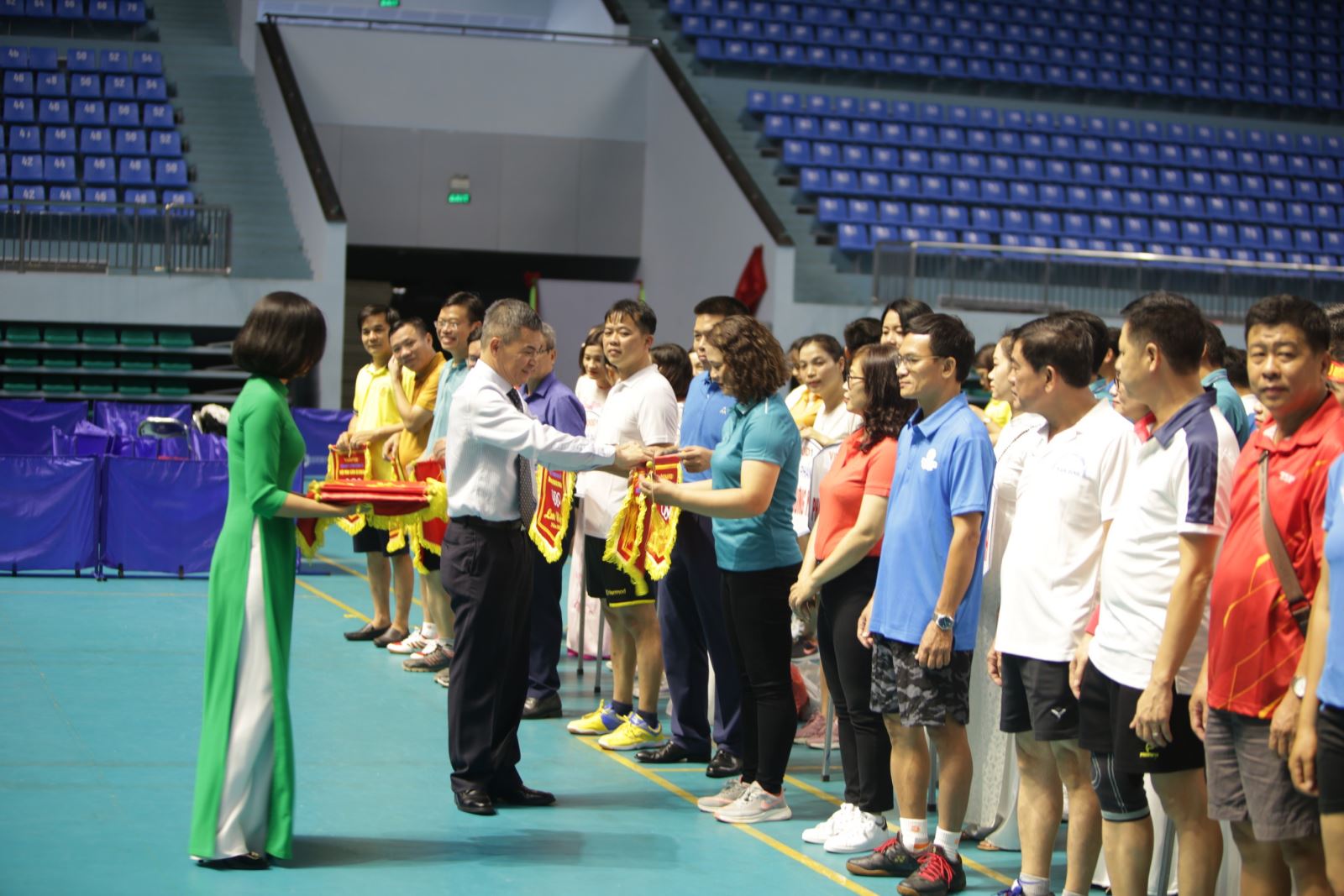 Trao cờ lưu niệm cho các đoàn tham gia hội thao