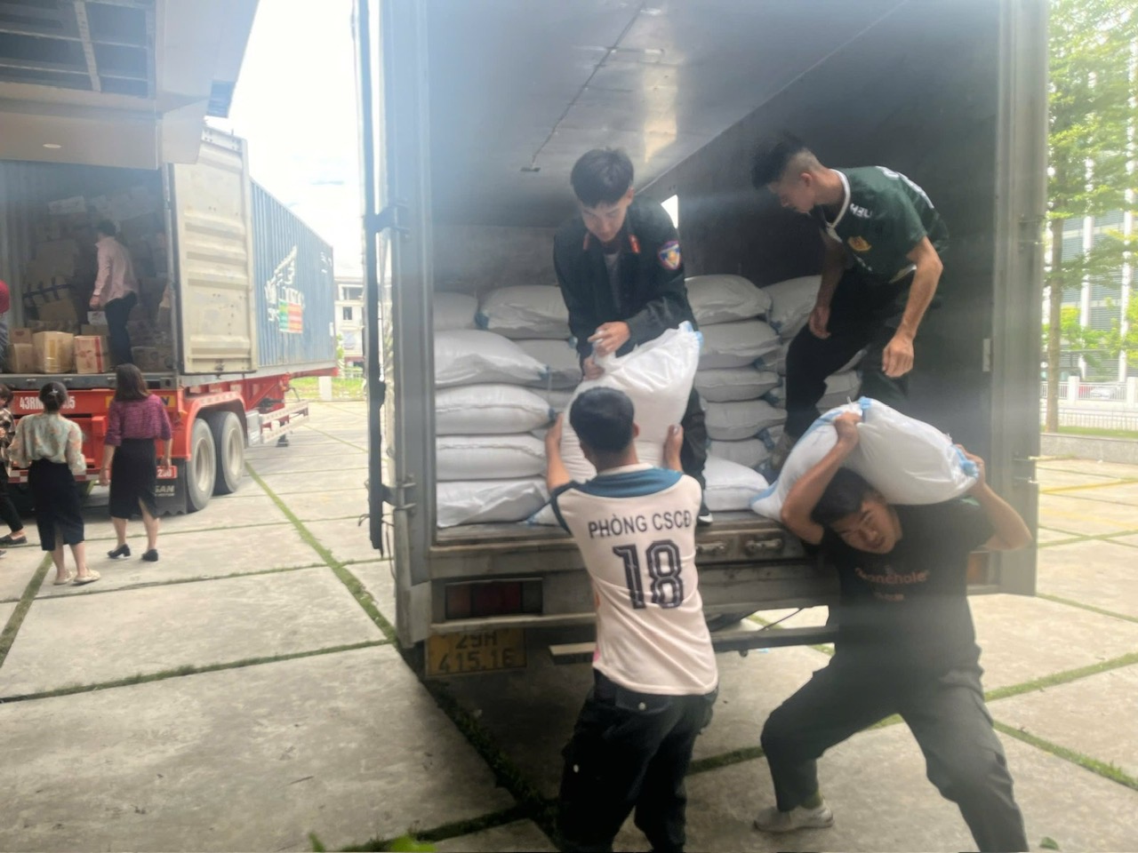 Vận chuyển gạo ủng hộ cho đồng bào tỉnh Cao Bằng
